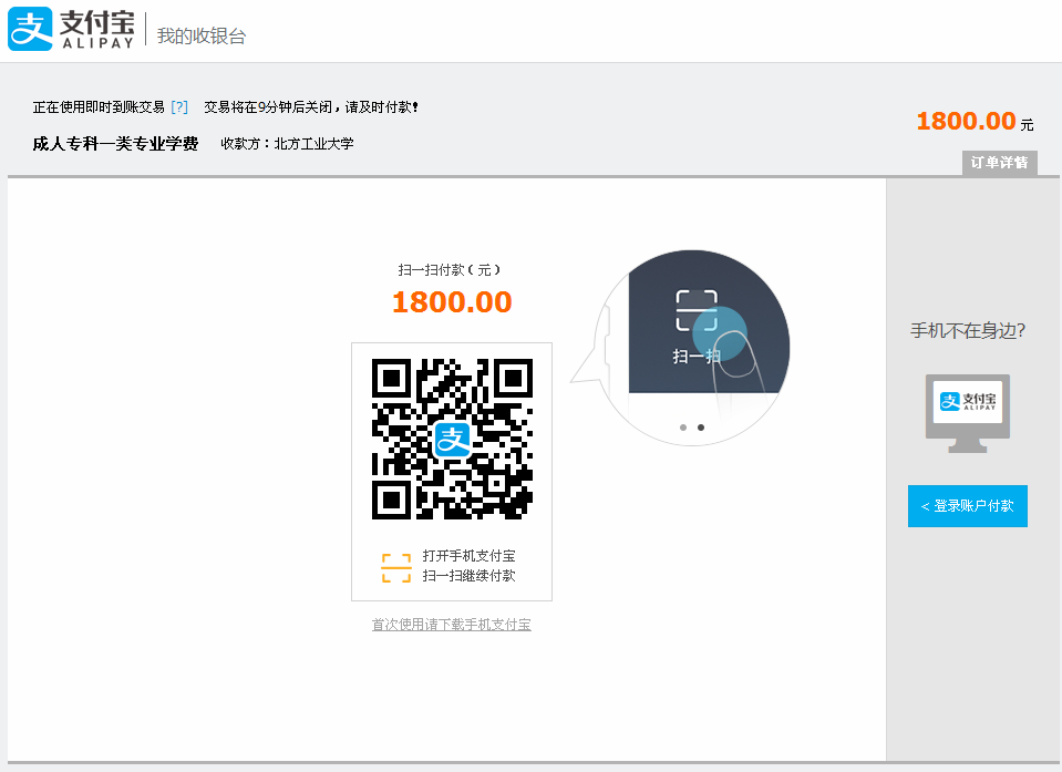 方式一:手机支付宝扫一扫付款(步骤忽略)