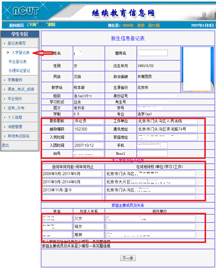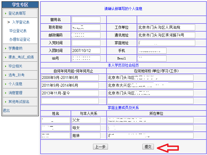 入学登记表填写步骤图示