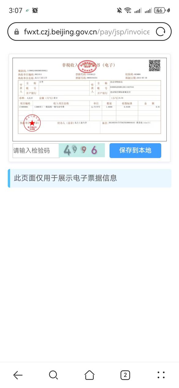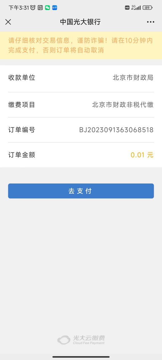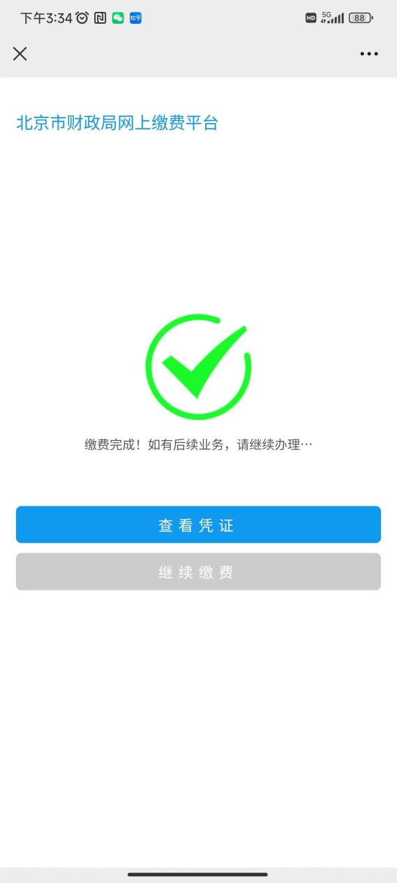 第六步:选择缴款通道并完成缴费,完成缴费后需等待几分钟方可查看到票据。也可以缴费后待时间允许时,点击“我的”——“我的发票”查看电子票据。