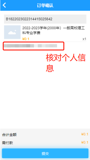 跳转到订单确认界面,确认信息无误之后,点击“提交”。