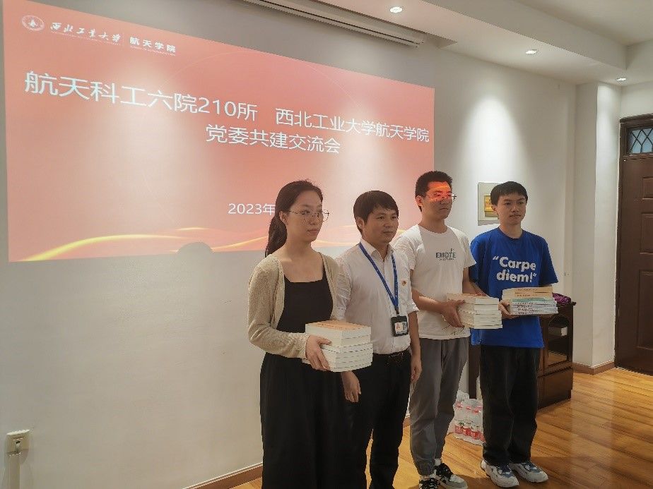 210所二室党支部书记王亚东向共建的kaiyun电子平台空天动力技术研究所研究生第2党支部赠送学习书籍,并向同学们表达了殷切的期望和激励。
