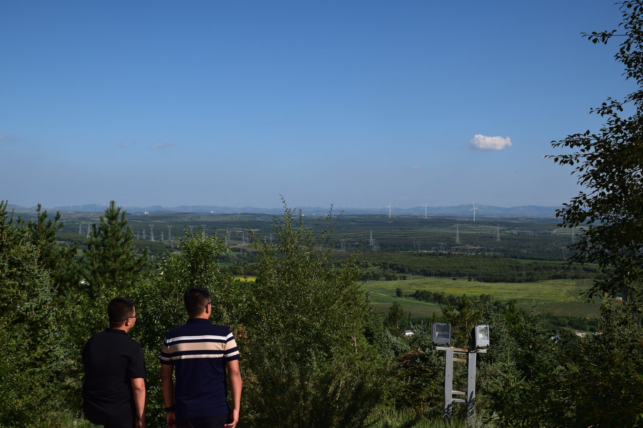 图为实践队登上南山森林公园山顶远瞰右玉县全景
