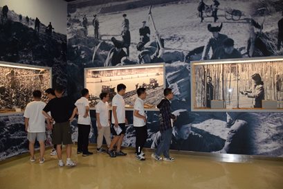 图为实践队在右玉精神主题艺术馆参观摄影作品