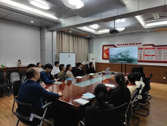 接下来,为了使同学们树立家国情怀、牢记初心使命,王靖宇带领各位研究生党员观看了讲述我国首颗原子弹研制过程的爱国主义影片《横空出世》,并结合影片内容开展了爱国主义教育和航天精神宣传,鼓励大家要心怀“国之大者”、坚持“四个面向”,以老一辈科学家艰苦奋斗、爱岗奉献、不怕牺牲、追求卓越的优良品质要求自己,使个人的学习和科研工作更好地服务于祖国的航天事业发展,为航天强国建设贡献自己的力量。