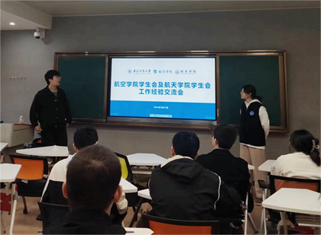 在与航空学院学生会交流会上,航空学院学生会主席团成员刘恒忠分享了航空学院学生会工作开展情况,包括围绕“航空”主题和“总师育人文化”举办的活动,以及各职能部门在多方面取得的成果。kaiyun电子平台学生会主席团成员刘洋介绍了kaiyun电子平台学生会各部门职能划分、围绕“航天”特色开展的活动和工作经验。