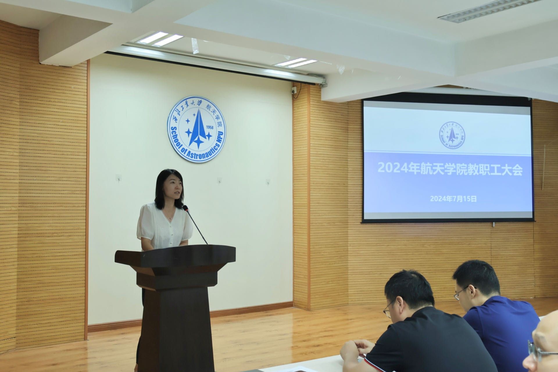 随后,院长黄攀峰详细阐述了岗位聘任方案的修订情况。他强调,学校全面启动以目标责任制为核心的新一轮评价改革,学院要通过不断优化完善目标责任制指标体系,汇聚力量、真抓实干,以核心关键指标牵引考核评价和资源配置,激发学院办学活力,提升核心竞争力,大力支撑学院内涵式高质量发展,为学校“双一流”建设和航天强国贡献新的力量!