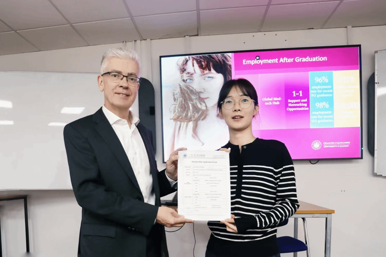 在欢迎仪式上,爱尔兰皇家科学院院士,高威大学燃烧化学中心主任Henry Curran(亨利·柯伦)教授向全体学生表示热烈欢迎,并简要介绍了高威的地理风光、人文风情和高威大学概况,希望同学们在课程学习之余,漫步高威市区,感受爱尔兰文化。欢迎仪式结束后,Henry Curran教授签署加入“一带一路”航天创新联盟。