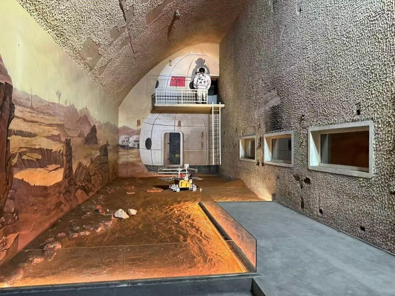 随后,大家走进了被被深深隐没在连绵起伏秦岭山脉中的液体火箭发动机泵水力试验室“201洞”旧址。在这里,同学们聆听了“201洞”建设的奋斗历程和老一辈人为了祖国航天事业可歌可泣的动人故事。沉浸式体验区里,大家在“两弹一星”精神、载人航天精神、北斗精神和探月精神等航天精神的浸润中感知着中国航天事业的发展脉络,在仿真的太空、月壤、火星等模拟环境中,最近距离的体验着航天科技腾飞的魅力。