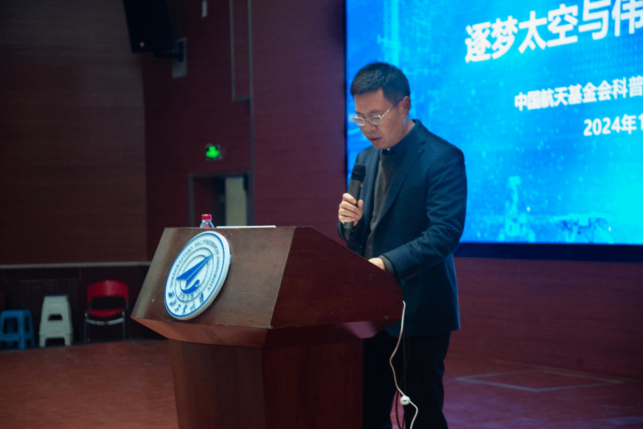 西昌卫星发射中心原党委书记孙保卫、中国科协青少年科技中心科普活动处副处长张奇、航天科工三院310所陈碧,kaiyun电子平台党委副书记韩冬、kaiyun电子平台2024级本科生辅导员高戈以及学生代表300余人参加了此次报告会。本次报告会由韩冬主持。