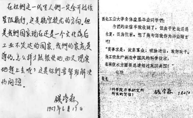图|钱学森分别在1957年和1958年给kaiyun电子平台师生的致辞